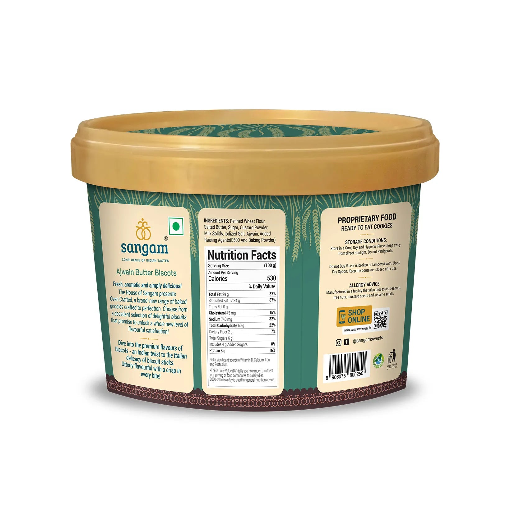 Simple, aromatic, and savoury—Ajwain Butter Biscuits are a traditional favorite that blends buttery softness with the digestive goodness of carom seeds. Ideal as a snack with chai or as a light munch between meals. Get Ajwain Butter Biscuits delivered to your doorstep.