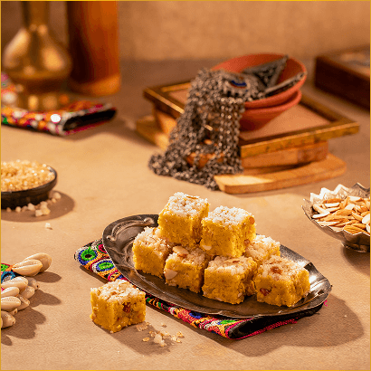 Gond Pak is a nourishing winter speciality from Gujarat and Rajasthan, prepared using edible gum, wheat flour, ghee, jaggery, and assorted nuts. Slow-roasted to perfection, it offers warmth, strength, and a rich, comforting flavour. Traditionally enjoyed to boost energy during cold seasons, it also makes a meaningful festive gift. Savour this wholesome delight. Shop Gond Pak online.