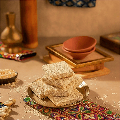 A traditional winter delight from North India, Gud and Till Gajak blends roasted sesame seeds with rich jaggery to create a crunchy, flavourful treat. The earthy sweetness of gud and the nutty warmth of till make it an essential part of festive celebrations like Lohri and Makar Sankranti. Light, wholesome, and energising, it’s perfect for sharing with family and friends. Celebrate the taste of winter traditions. Shop Gud and Till Gajak online.