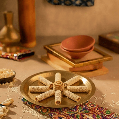 Crafted with roasted sesame seeds and pure jaggery, Gud and Till Gajak Roll brings a delightful twist to the classic gajak with its rolled, easy-to-enjoy form. Each bite offers a perfect crunch and a warm sweetness that captures the essence of winter festivities. Ideal for gifting, celebrations, or guilt-free snacking, this treat adds a charming touch to every occasion. Shop Gud and Till Gajak Roll online.