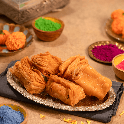 Pragiri is a festive traditional sweet known for its rich texture and indulgent flavour, prepared using mava, sugar, and aromatic ingredients. Its soft yet slightly firm consistency makes it a delightful treat during Holi and festive gatherings. Perfect for sharing and gifting, it brings a sense of celebration to every occasion. Experience this traditional festive delight. Shop Pragiri online.